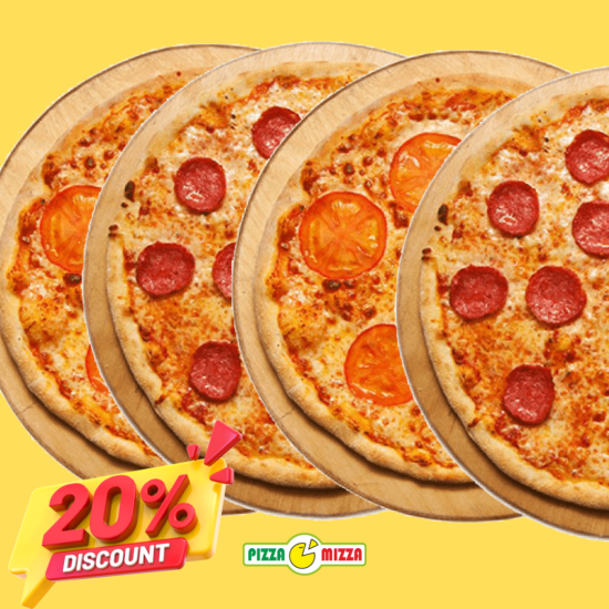 4 пиццы с 20% скидкой (Пепперони 2шт, Маргарита 2шт)